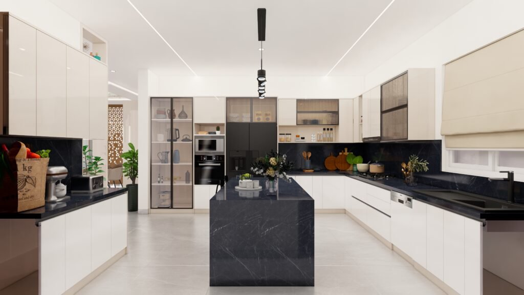 All the tools required for food preparation will be located in this area (between ‘cleaning’ and 'cooking'). From cutting boards, knives, seasonings, and herbs, all items are easily available.